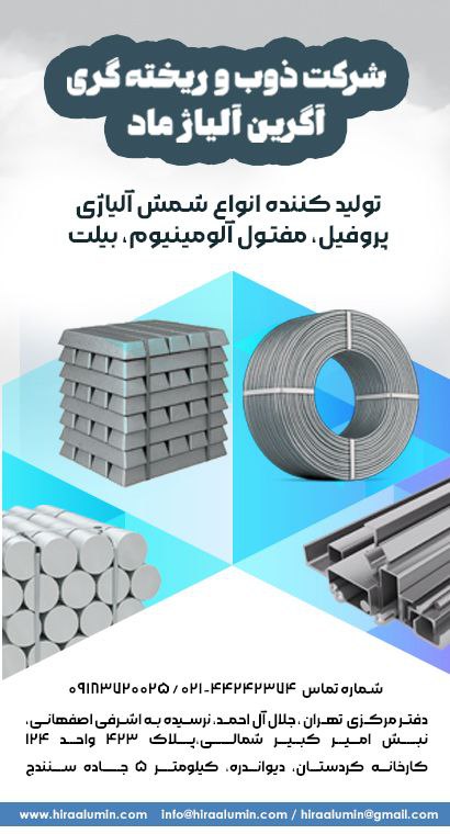 شرکت آگرین آلیاژ ماد با برند تجاری هیرا آلومینیوم در سال ۱۴۰۲ در استان کردستان شهرستان دیواندره با بهره گیری از دانش فنی و بروز شرکت های مطرح اروپایی ، استقرار بروزترین ماشین آلات خط تولید و کادر متخصص ، با هدف تولید انواع شمش های آلیاژی ، پروفیل و بیلت آلومینیوم شروع به فعالیت نمود .